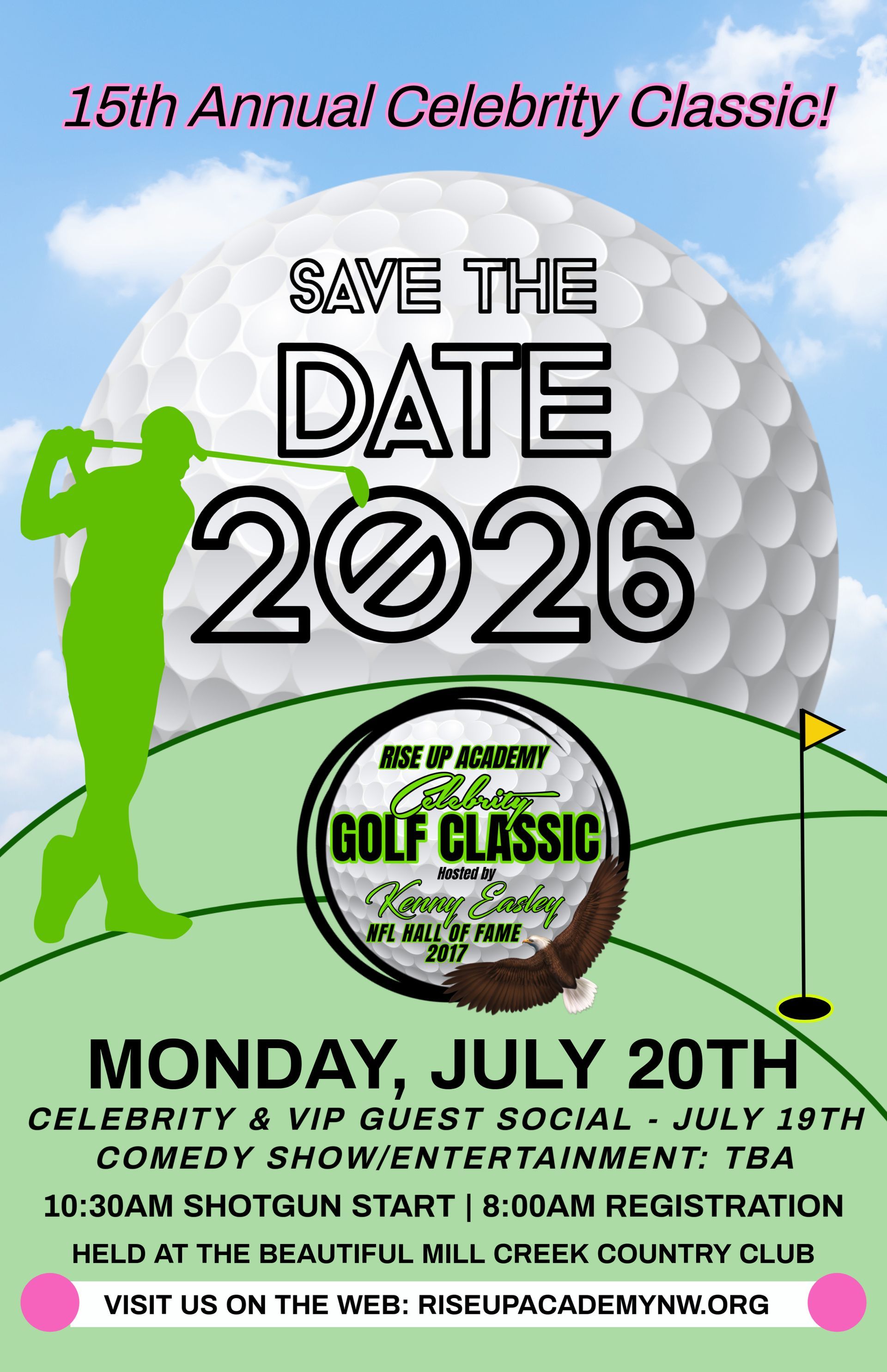 Please mark your calendars for Monday, July 20, 2026, as we return to Mill Creek Country Club for the 2026 Rise Up Academy Celebrity Golf Classic, proudly hosted by Nate McMillan.